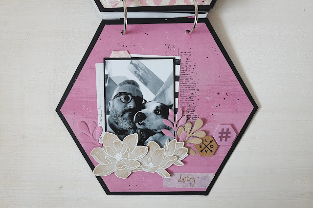 Ho utilizzato una collezione di Heidi Swapp favolosa...molto dark con tante rose e molto fondo nero e l'ho resa un po' più glitterosa grazie al dorato che nei mei progetti non manca mai e ai timbri di Florilege e della Coppia Creativa.